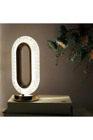 Dekor Yapay Eva Çiçeği Kablosuz Masa Lambası Beyaz Gold