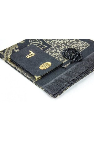 مقاس جيب من الـ MNZ - Velvet Yasin Book with Name Plate Prayer Rug Prayer Beads Boxed Special Set Black
