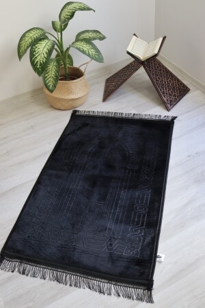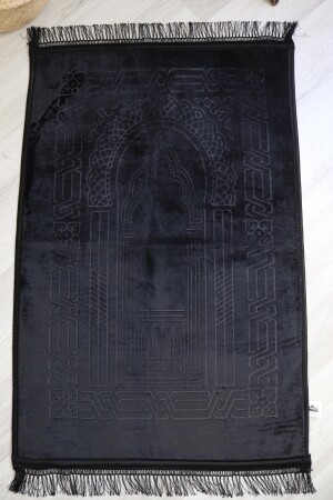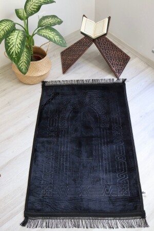 Dekoratif Dijital Baskılı Siyah Kaymaz Taban Seccade Namazlık 75 x 120