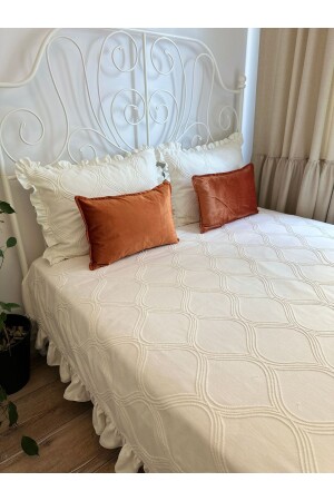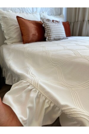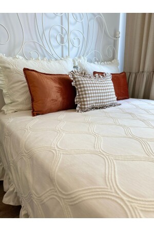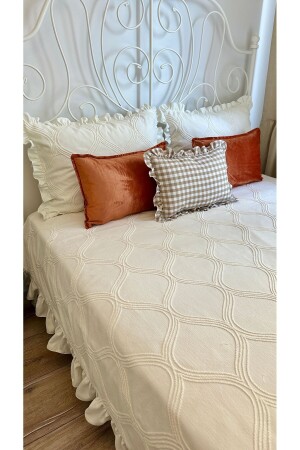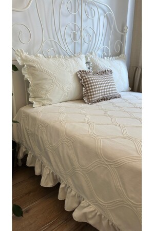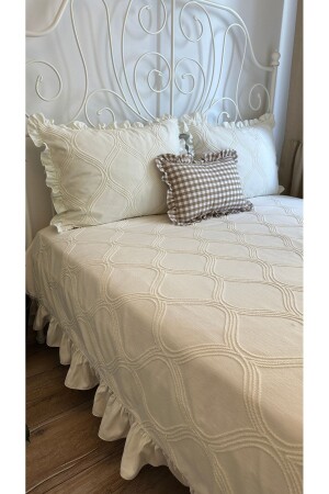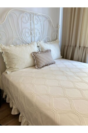 سرير فريد من نوع MNZ-Frilly Vintage Bedspread with Embroidery Detail Ecru Frilly Bedspread سرير فريد من نوع Ecru King-size Ruffle تفاصيل