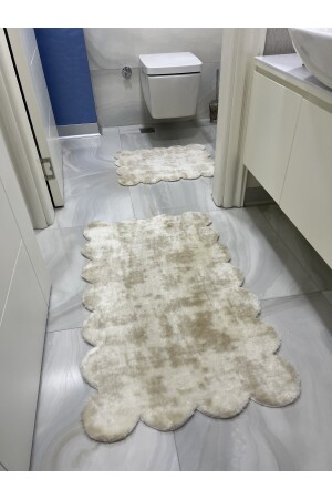 Krem Exclusive 3lü Oval Çeyizlik Saçaklı Fransız Dantelli Klozet Takımı Banyo Paspas Seti BnyExclusiveOval3lu