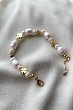 Vintage Stil 18 Ayar Sarı Altın Kaplama 24 Cm Gümüş İnci Bileklik
