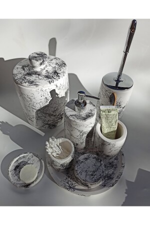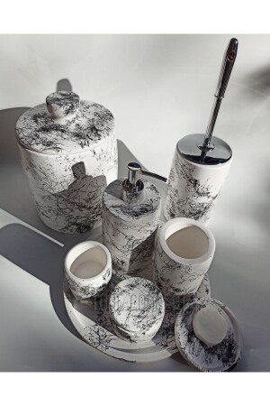 5 Parça Lucas Akrilik Bambu Banyo Seti Beyaz