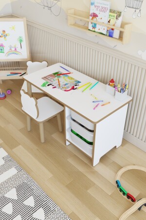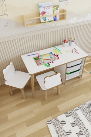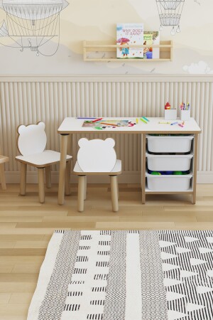 مقعد الطاولة للأطفال MNZ - مجموعة الدراسة والنشاطات - جدول مع 3 أسطوانات - سطح مسح الكتابة - 2 مقاعد باندا نشاط مع الجانب