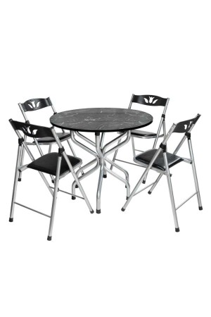 60x90 Siyah Mermer Desenli Katlanır Masa Kırma Mutfak Masası 1120