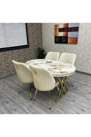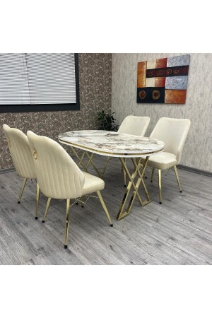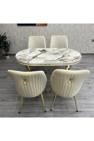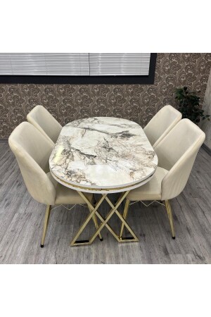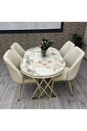 مقعد طاولة مطبخ MNZ-Kichen Set Karnel 80-140 طاولة مطبخ من ذهب أبيض مسخري طاولة مطبخ 4 أشخاص