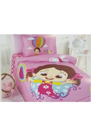 Mavi Balonlu Oturan Küçük Kız Desenli Tek Kişilik Bebek Çocuk Nevresim Seti
