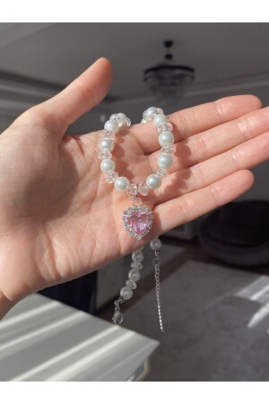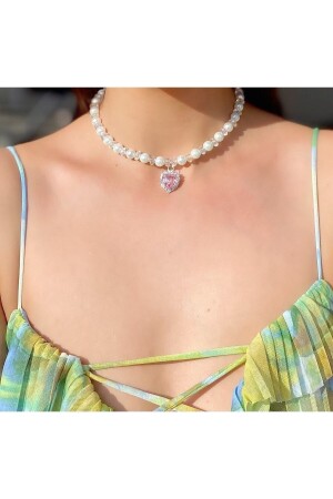مقعد قلب من نوع MNZ-Pink Heart Collar مع لؤلؤة و حجر لامع