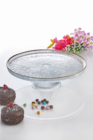 MNZ-İLİVA كعكة زجاجية مع قدم كعكة مع طلاء ذهبية التفاصيل خدمة الصحن - كعكة كعكة - وعاء الفاكهة - عرض
