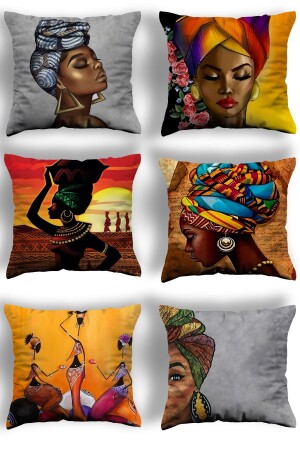 Afrika Temalı Kırmızı Sarı Renklerde Hediyelik 4'lü Dijital Baskılı Koltuk Kırlent Kılıfları