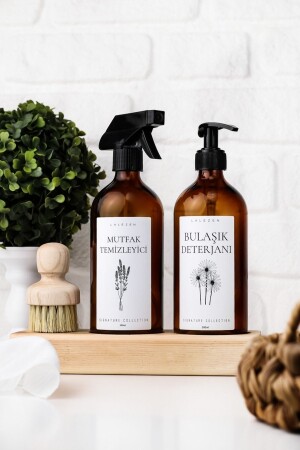 2'li Amber Cam Sıvı Sabunluk Mutfak Bulaşık Deterjan Şişesi 500ml AMENSABUN