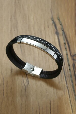 Van Cleef Model 5'li Siyah Yonca Çelik Bileklik - Gümüş Rengi