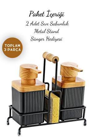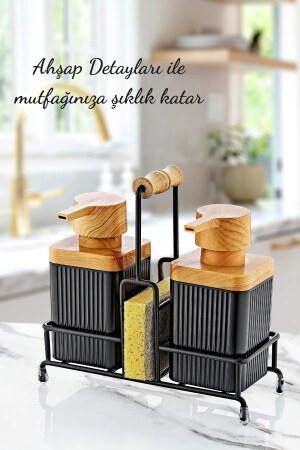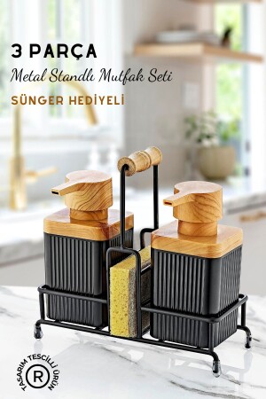 مقعد من المعدن من الخشب لمحة غسيل الأطباق مضغوطة والصابون السائل الموزع المطبخ مجموعة - هدية إسفنج GM00397