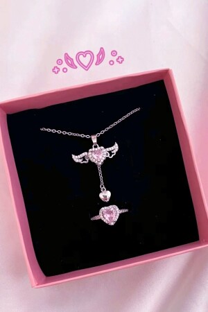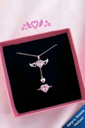 Taşlı kalpli Çelik kolye Portakal çiçeği yağı hediyeli
