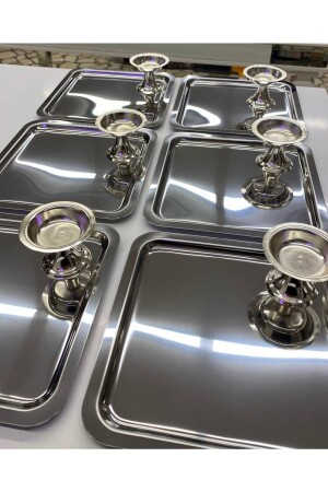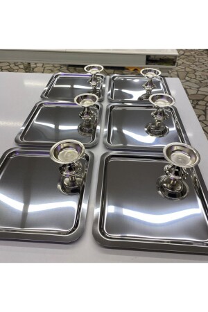 Paslanmaz Çelik Kare 6lı Aksesuarsız Çay Kahve Sunum Tepsisi