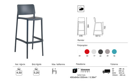 مقعد "MNZ-Joy" - S بار 75 سم 2 قطع