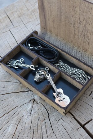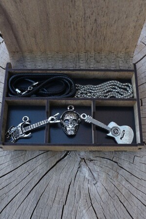 مقعد MNZ-Noclace Set خشبية خاصة هدية صندوق الموسيقى الجمجمة حبل الغيتار الكهربائية والسلسلة DP-18