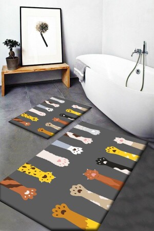 مقفوفات القطة الملونة MNZ نمط غسيل غير المنزلق قاعدة حمام السرير 2 قطع Elsebanyopas20