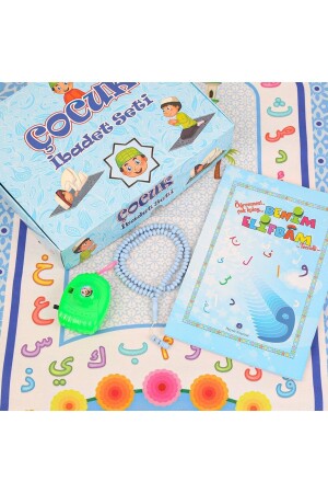 Oğlumun İbadet Seti Namaz ve Kuran Öğreniyorum Çocuk Seccade Seti Mavi