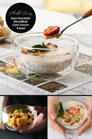 كأس عرض مزدوج الحائط من بوروسيليكات المقاوم للحرارة من MNZ. كأس الحساء الحلوى والكأس السلطة - 1 كمبيوتر. يتم إرس