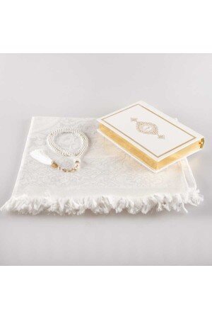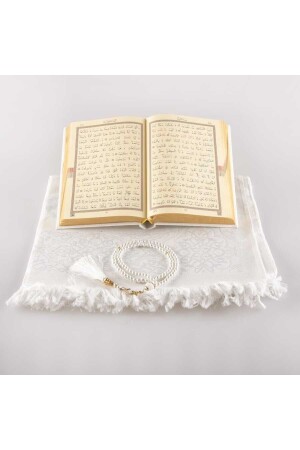 مقلاة MNZ + كرائات الصلاة + مجموعة هدية القرآن (حجم الحفيز - أبيض)