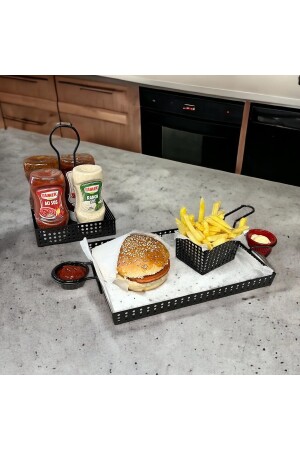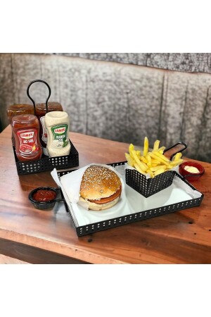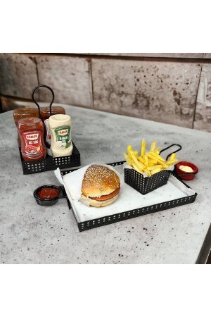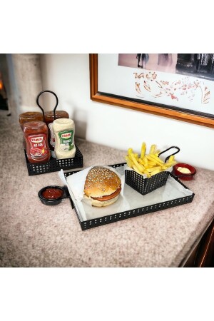Paslanmaz Çelik Kare 6lı Aksesuarsız Çay Kahve Sunum Tepsisi
