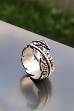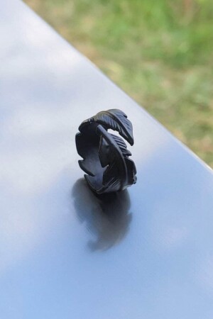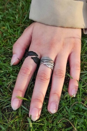 حلقة أسود من نوع MNZ-1 مع صورة ورقة ريش. حلقة فضية من نوع ورقة ريش. حجم قابلة للتعديل. يمكنك توسيعها أو ضيقها حسب إصبع