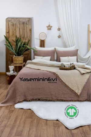 مقياس (MNZ-King) براون - خفيف براون (Muslin) غطاء السرير / مجموعة رمي مع 2 غطاءات وسادة