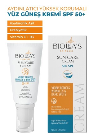 منز-SUN CARE 50+ SPF يقلل بشكل مرئي من التجاعيد والبقع المظلمة. فيتامينات C + B3 الفيجانية حمض هيلورون