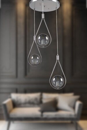 Pare Model Modern Spor Siyah 4'lu Glop Füme Camlı Avize