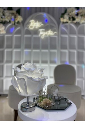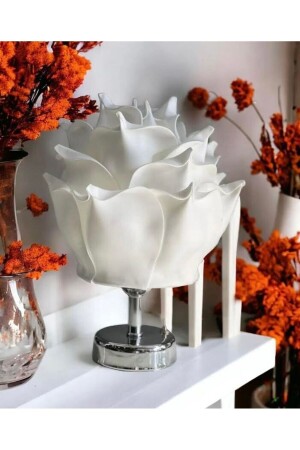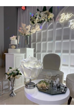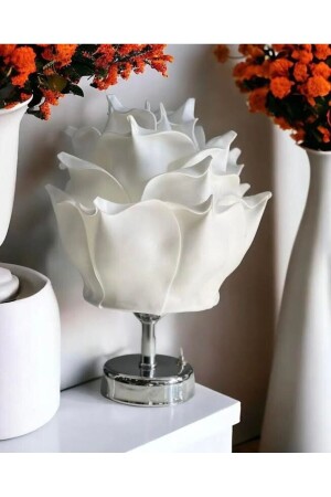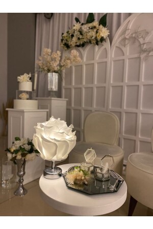 Dekor Yapay Eva Çiçeği Kablosuz Masa Lambası Beyaz Gold