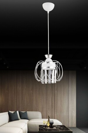 مكنز-معلقة مصباح صالون أبيض واحد الصافير الكروم بلوريا حجر أسفل وجهة للفخامية الشنابل 032994