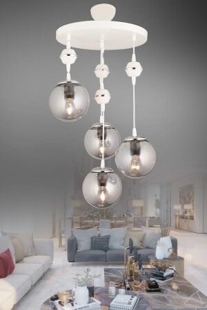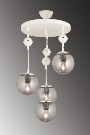 Pare Model Modern Spor Siyah 4'lu Glop Füme Camlı Avize