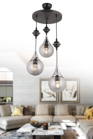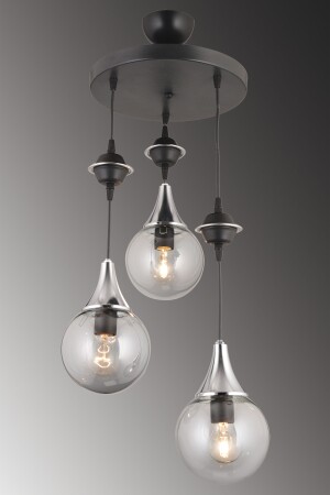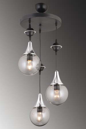 مكنز المعلقة المضيئة المعلقة الأسود 3 قطع مدخنة كوب الزجاج العلوي الكروم إلى أسفل المواجهة للفخامة الشنابل snsz50