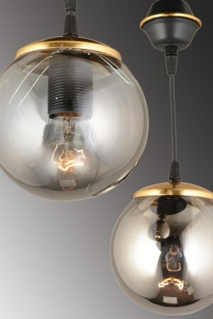 Pare Model Modern Spor Siyah 4'lu Glop Füme Camlı Avize