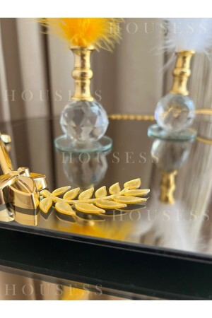 مـنز-إغلاظ مـشـملة: لون الصفحة: الصفحة الذهبية: 25 × 25 سم / المواد: الزجاج: 2 قطع الذهب ريشة