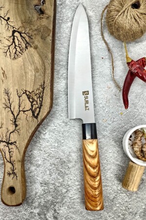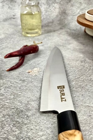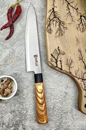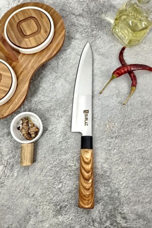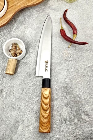 م.ن.ز- طول سكين الطاهي لدينا، الذي أحضرتنا إليه لك بإلهام التصميم الياباني، هو 20 سم. طول الخشب هو 14 سم. طوله الإجمالي 34