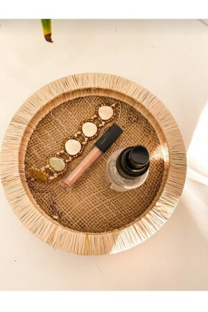 قطر MNZ: 25 سم سم سمة: 5 سمة سلة ديكورية مصنوعة من كروت خشبية ورأس رافيا