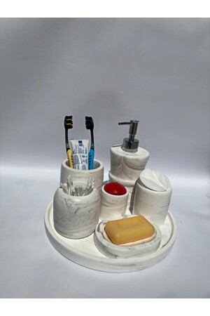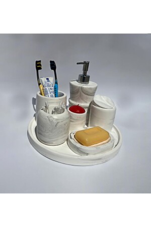 5 Parça Lucas Akrilik Bambu Banyo Seti Beyaz