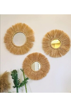 مكنسة (MNZ) - صنع يدوي - زينة جدارية من 3 قطع مرآة