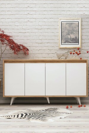 مقاس المنتج W140cm D40cm H85.6cm المواد الجسم: GOLD OAK Particleboard COVER:WHITE CHART:COLOR GOLDEN OAK-