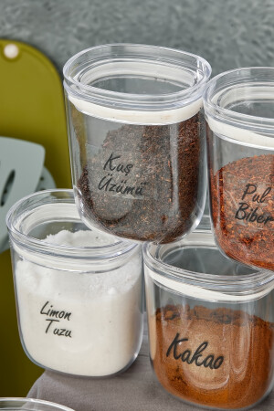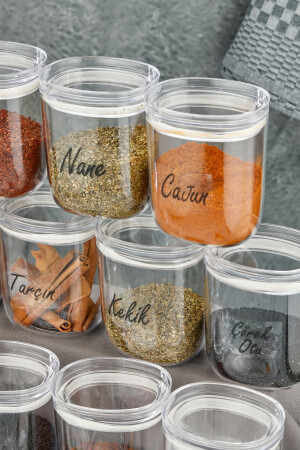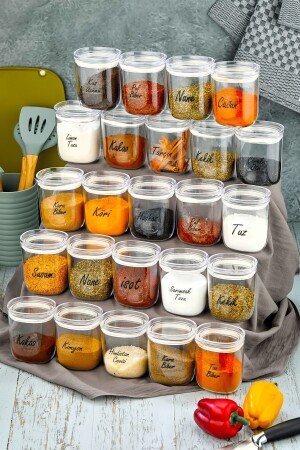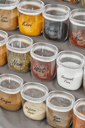 12'li Kapağı Kendinden Kaşıklı Ve Etiketli Baharatlık Seti 300 ml Gold Etiketli Cam Baharat Takımı