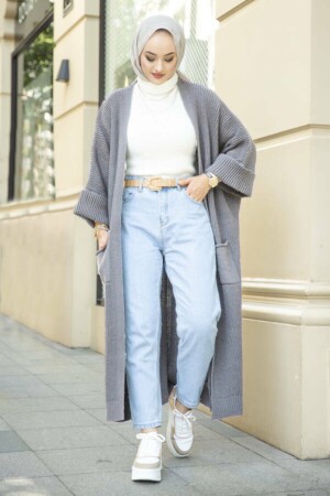 Kadın Vizon Yumuşak Dokulu Penye Düşük Uzun Kol Esnek Penye Uzun Hırka & Tesettür Hırka