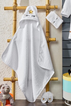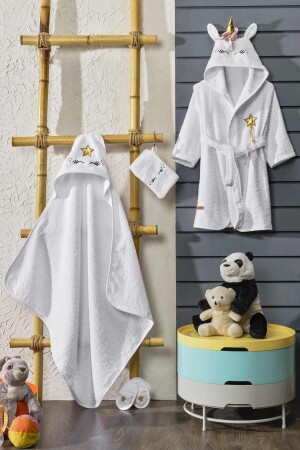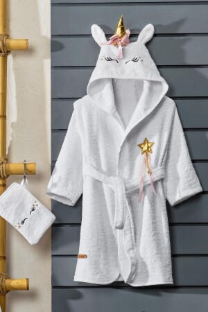 Çocuk Bornozu Kapüşonlu Beyaz %100 Pamuklu