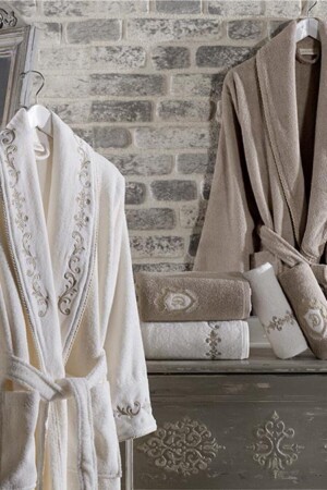 Lora 10 Parça Nakışlı Bornoz Seti Bornoz Bornoz Takımı Çeyiz Seti