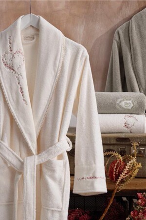 ملابس حمام من القطن من الخلفية من طراز MNZ - 6 قطع كريم الساري - بيج 8681663007418