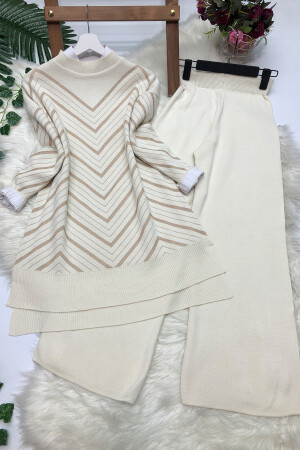 Boho Natural Keten Yelek Etek Takım Beyaz