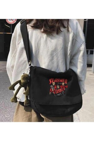 Kpop Serisi Stray Kids Baskılı Iç Hacmi Geniş Siyah Unisex Iki Bölmeli Postacı Çantası