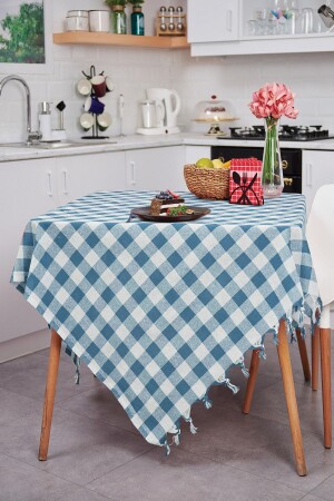 ملابس طاولة متعددة الأغراض ملابس النزهة ملابس طاولة زرقاء ملابس زرقاء غينغهام 140x140 سم