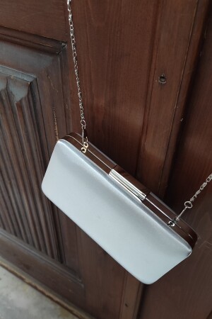 Kadın Yuvarlak Gümüş Taşlı Bilezik Aksesuarlı Abiye Clutch Portföy Çantası